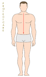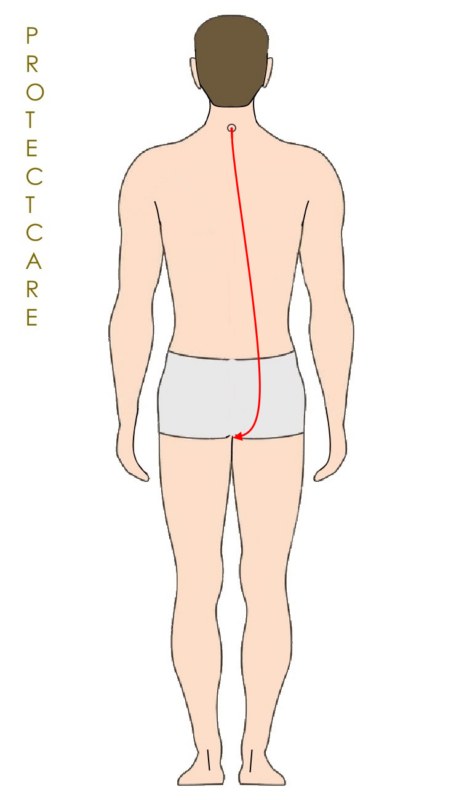 Meet vanaf nekknobbeltje naar beneden tot in “kruis” (gebukt)