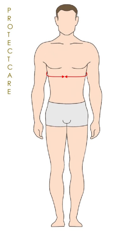 Meet rondom borstkas, zie onderstaande afbeelding.